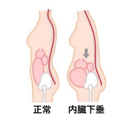 骨盤のゆがみや骨盤底筋が弱くなることで内臓下垂が起こります。